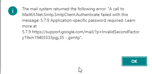 Recently I encounter this issue as one of the customer would like to set up Gmail as service provided for SMTP mail in business central.