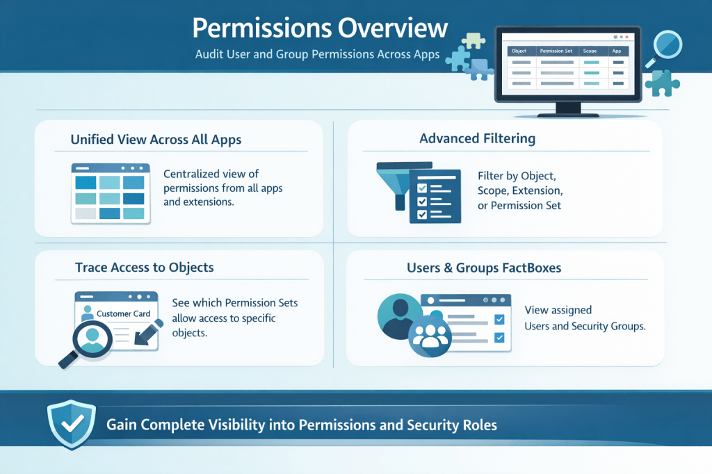 With Business Central 2026 release wave 1 (v28), Microsoft introduces a powerful new capability — the Permissions Overview page, providing a centralized view of permissions across all apps and extensions.