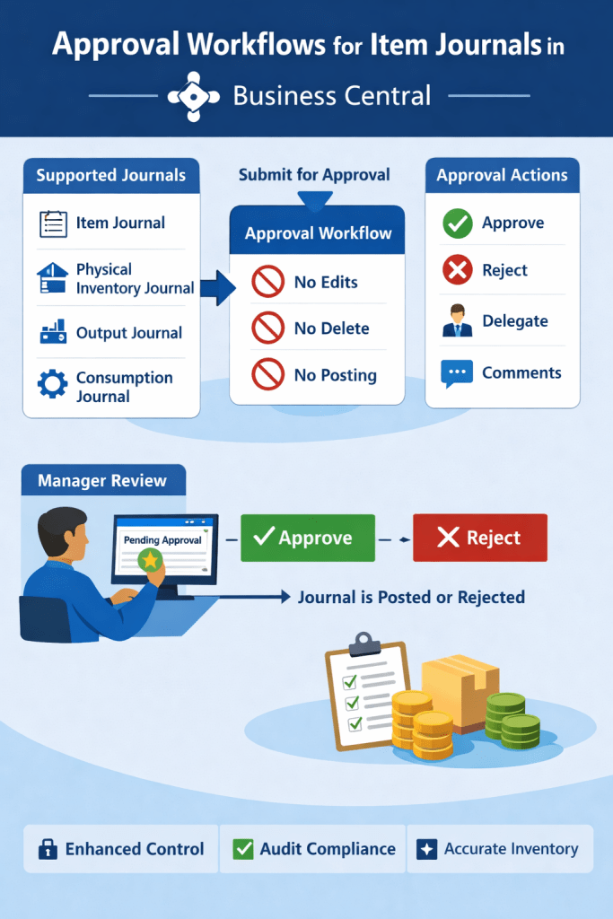 The ability to apply approval workflows to Item Journals in Microsoft Dynamics 365 Business Central is a valuable enhancement for organizations managing inventory and manufacturing operations.