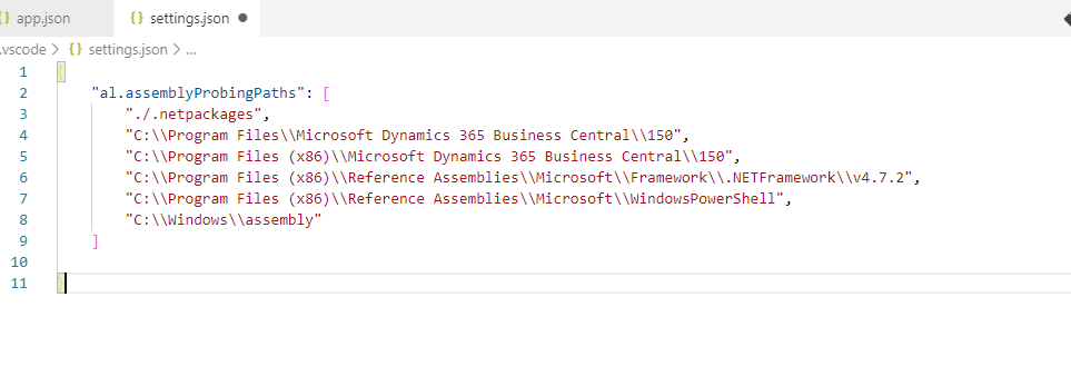 Step 4:- Add the following in either user settings/workspace settings . This is required for .NET DLL used in application